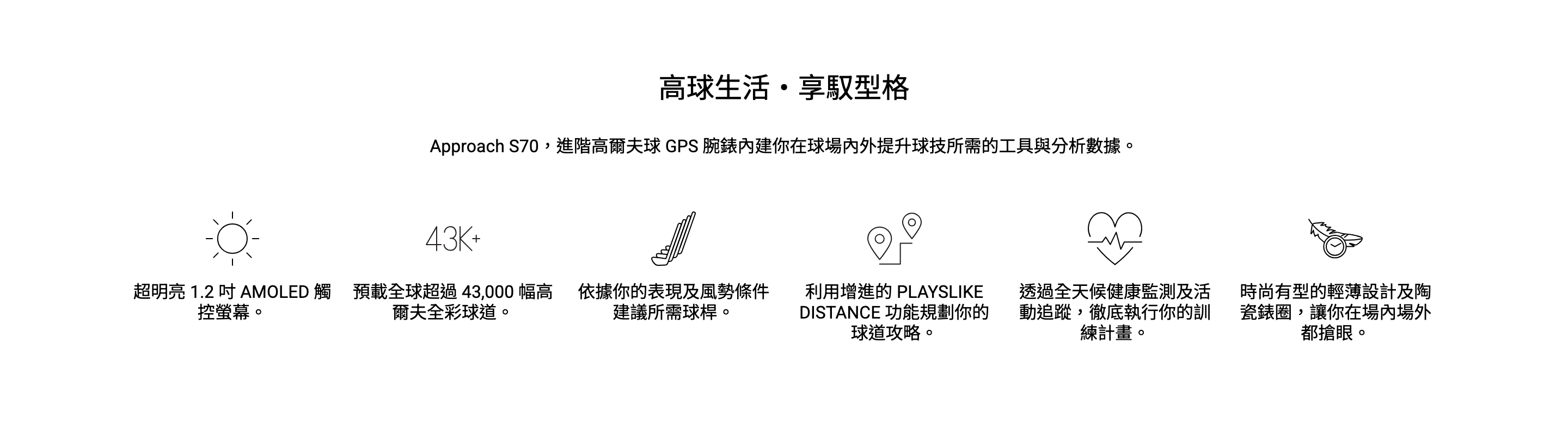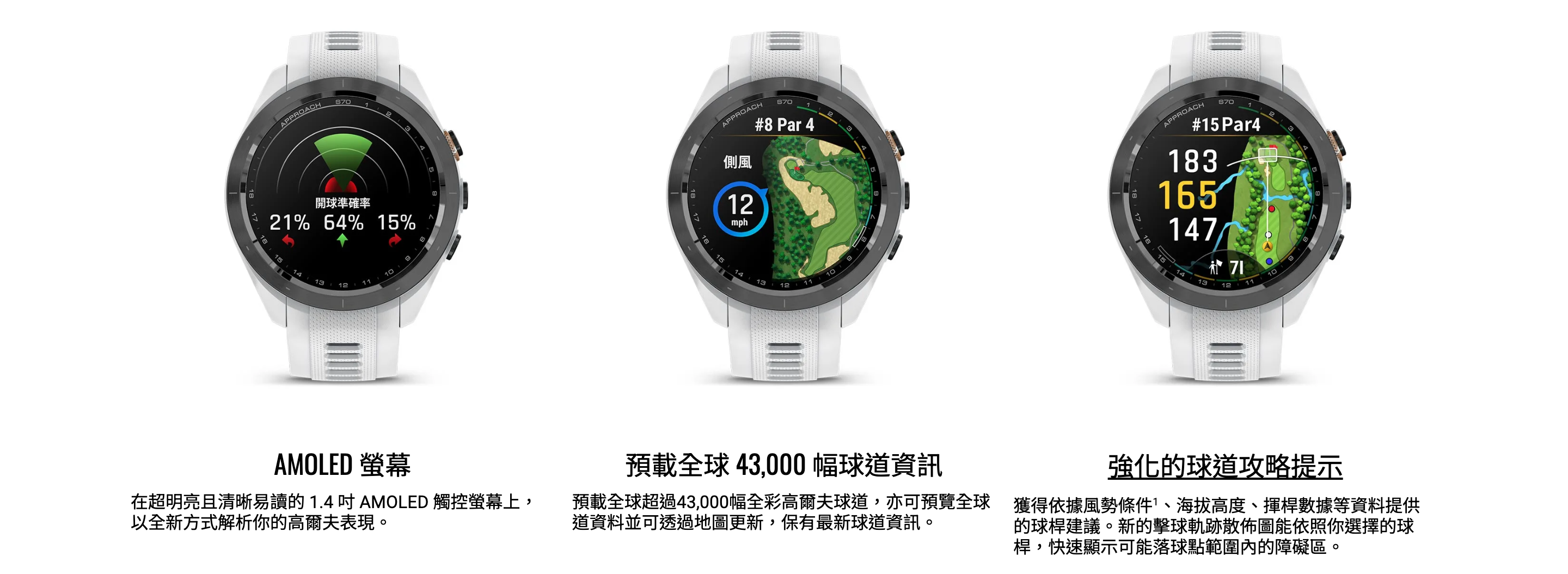 【 Garmin 】 Approach S70 - 42mm 高爾夫GPS腕錶 - 白