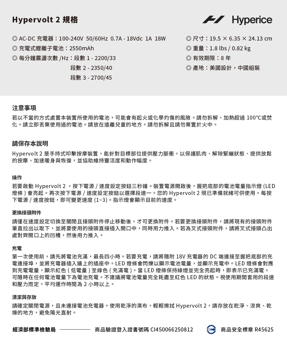 Hypervolt 2透過人體工學進行握柄修改,降低器材重量,並同時保有三段震動敲擊力道,協助您更快速且更好地回到工作崗位。