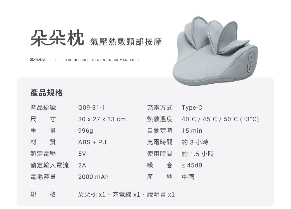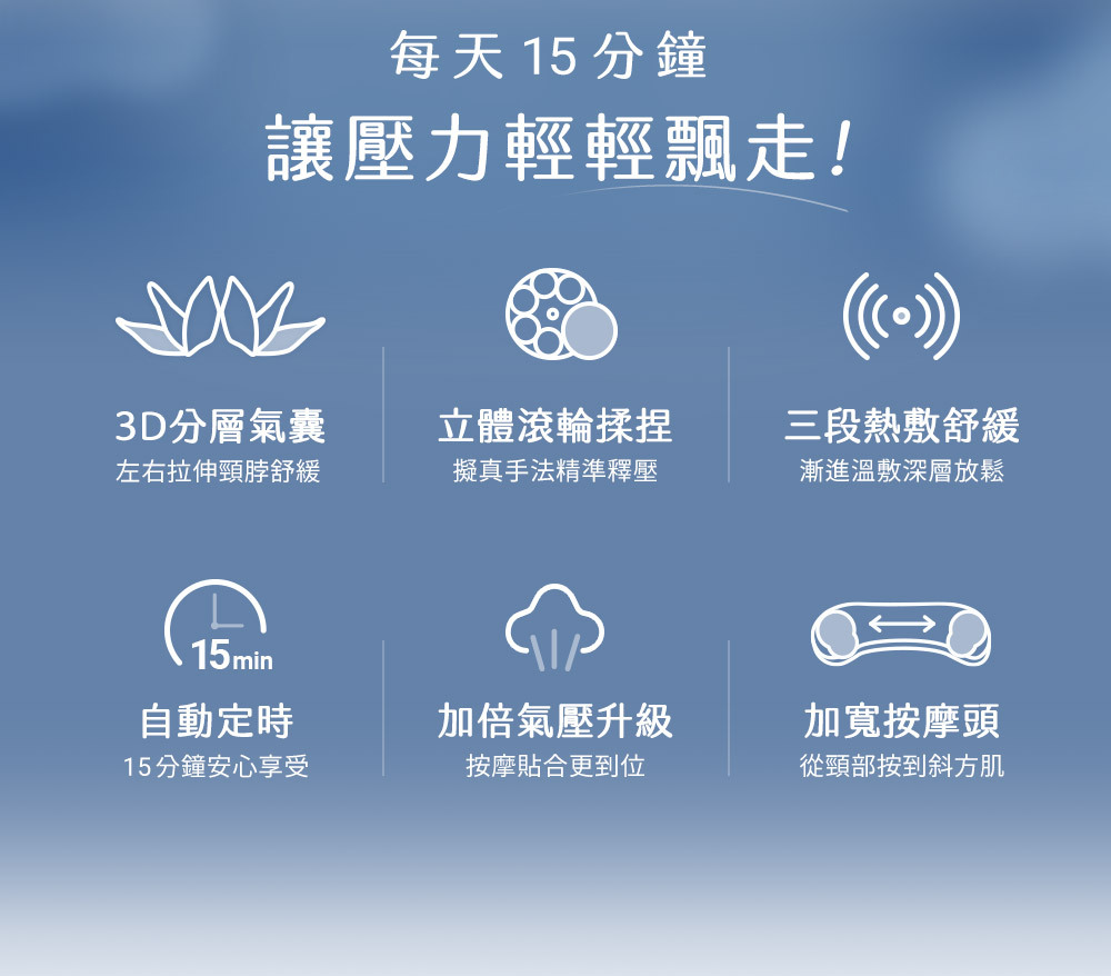 ❶ 6片 3D 分層氣囊,左右拉伸頸脖舒緩