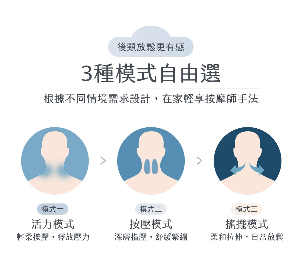 ❹ 三種模式自由選,後頸放鬆更有感